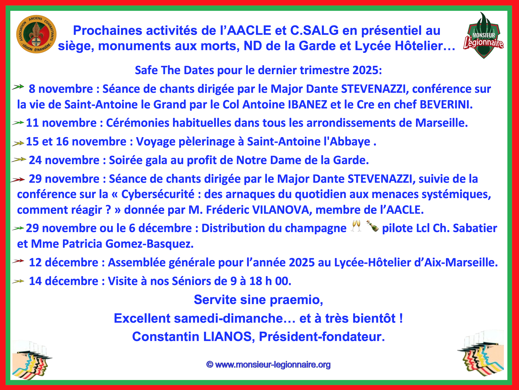 À tous les participants à cette visioconférence pour laquelle il n’aura pas de replay, celui-ci étant réservé uniquement à nos séniors membres et à jour avec l'AACLE qui n’ont pu être présents.
